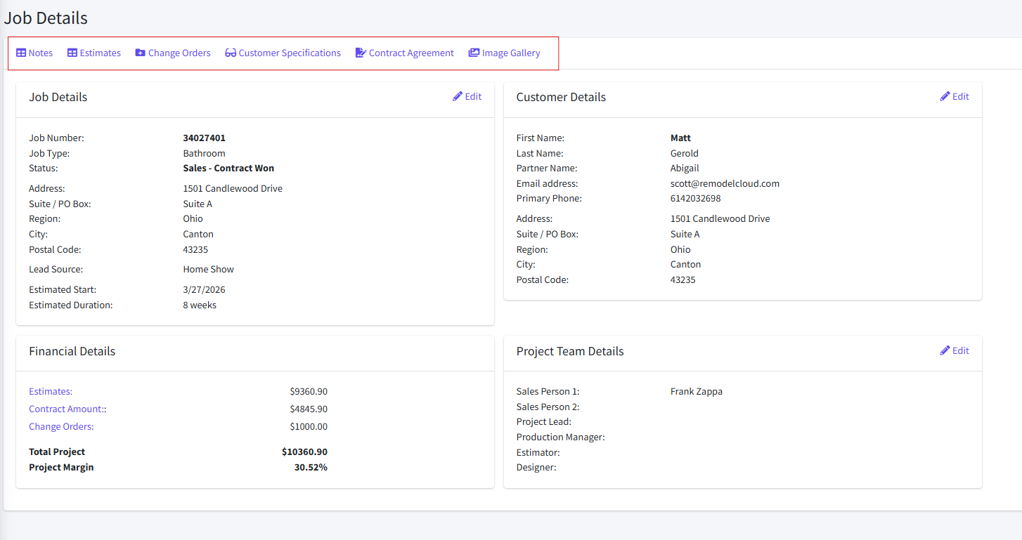 Job management in Remodel Cloud brings everything together, customers, estimates, financials, and daily activity—into a single, organized view. No more chasing information across spreadsheets or emails. Just real-time visibility, better coordination, and smoother projects from start to finish.