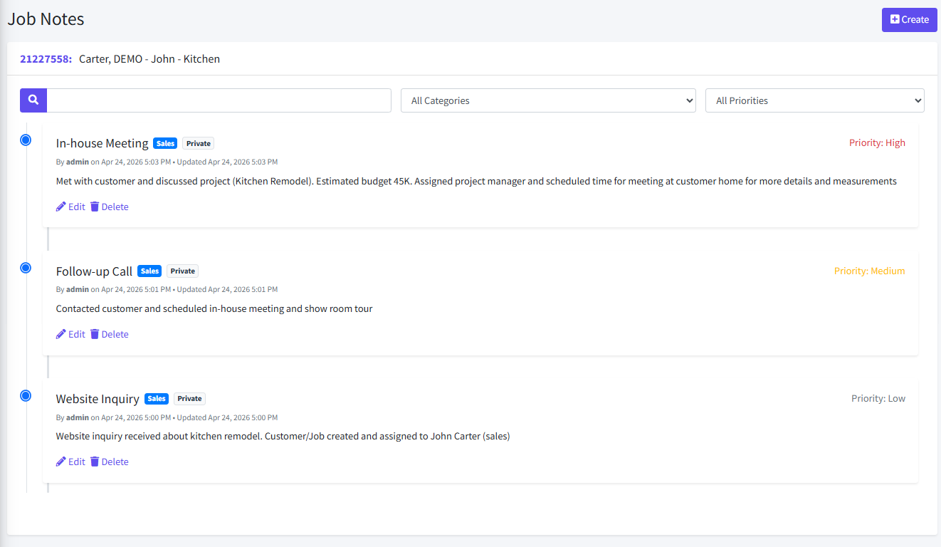 Capture, organize, and track every sales opportunity in one centralized system built specifically for remodelers. Remodel Cloud helps you manage prospects efficiently, follow up consistently, and convert more leads into profitable jobs.